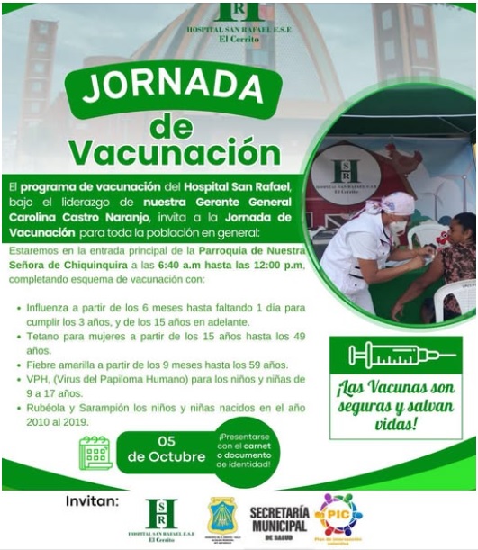 En el marco de la Semana Andina de la Salud, El Hospital SAN Rafael E.S.E y el Plan de Intervenciones Colectivas (PIC) municipal, en articulación con la Secretaría de Salud Municipal, el programa PYMS y el programa de vacunación, adelantamos jornadas de vacunación en las instituciones educativas públicas .